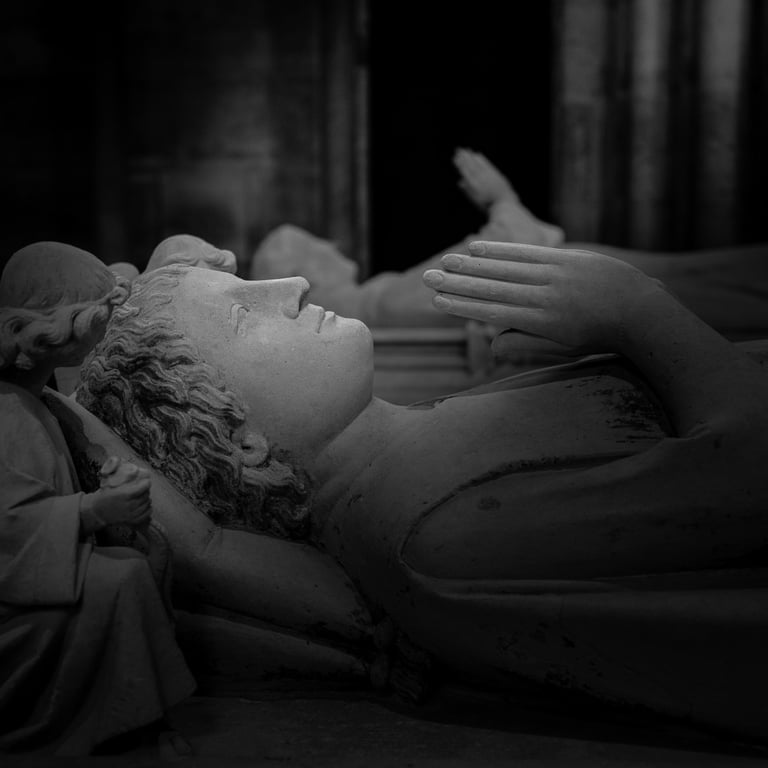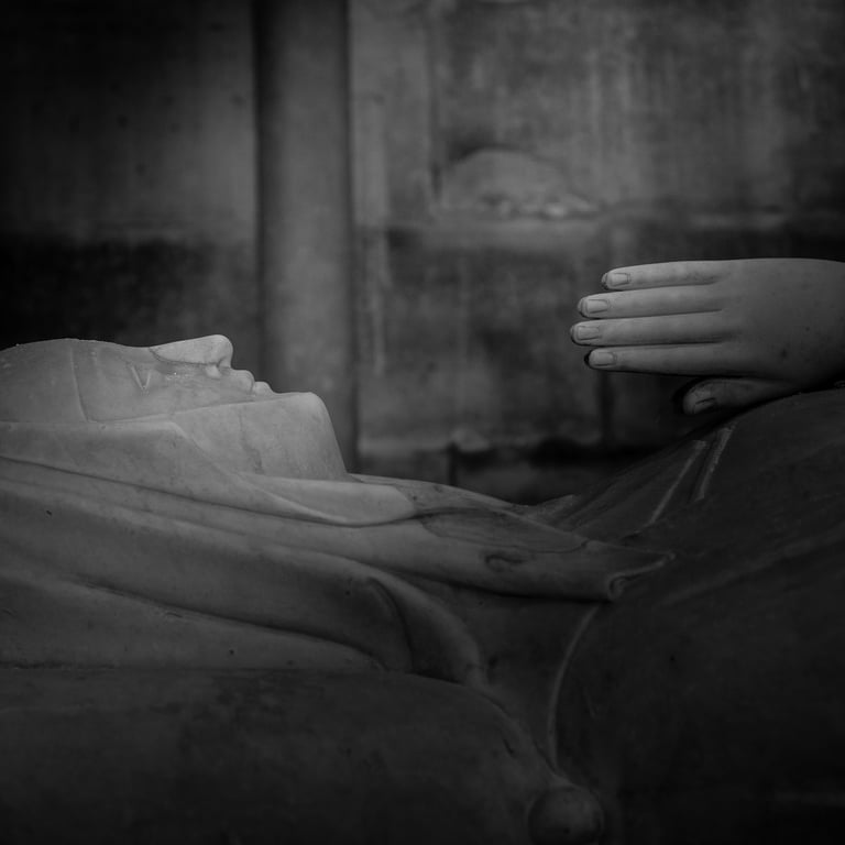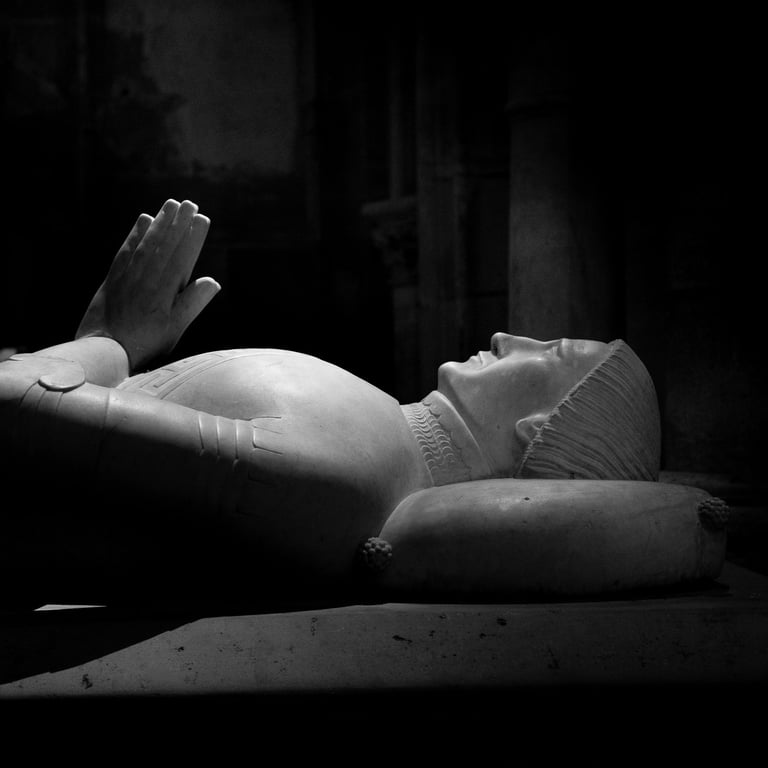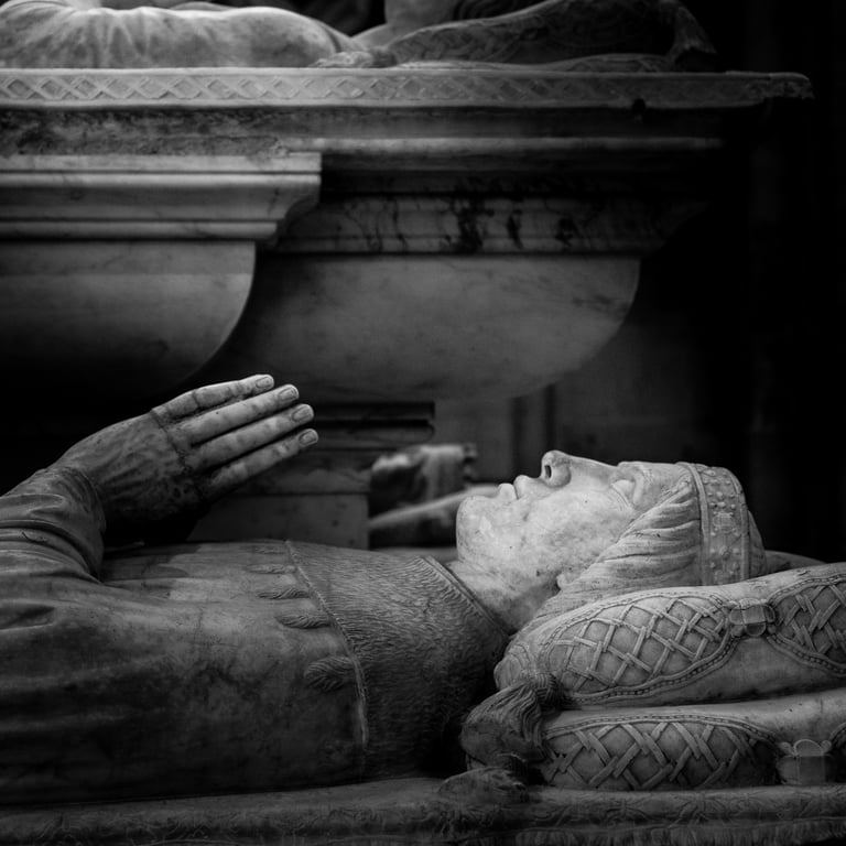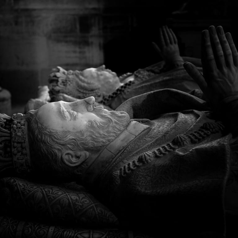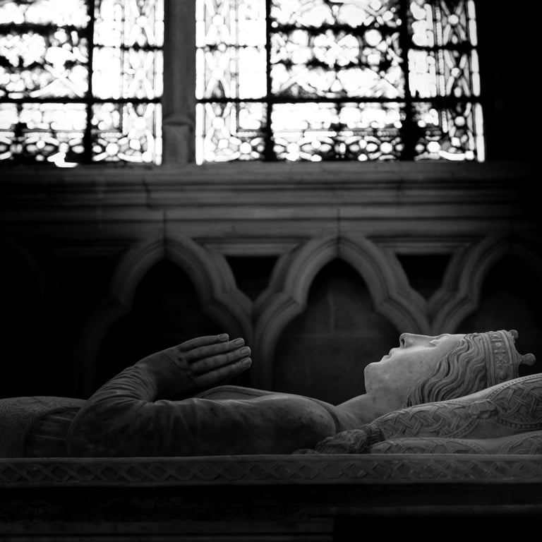 La palette monochrome intensifie les formes et les textures, faisant ressortir la sérénité et la majesté des gisants, tout en plongeant le visiteur dans une réflexion silencieuse sur la mortalité et l'immortalité. On y ressort au prix d’une introspection sur le passage du temps, le devenir de l'héritage de ces personnages et la splendeur intemporelle des monuments qui les honorent.